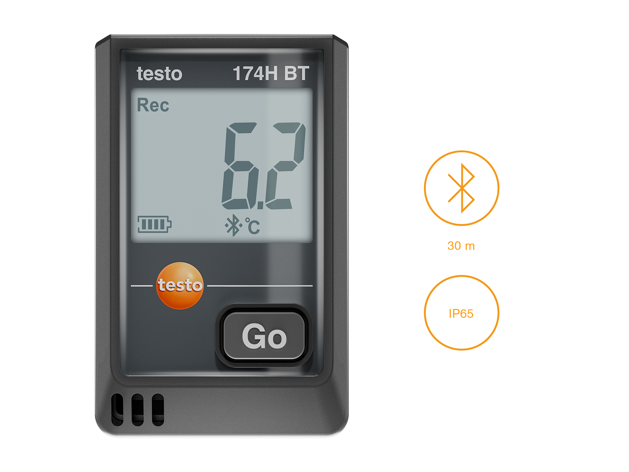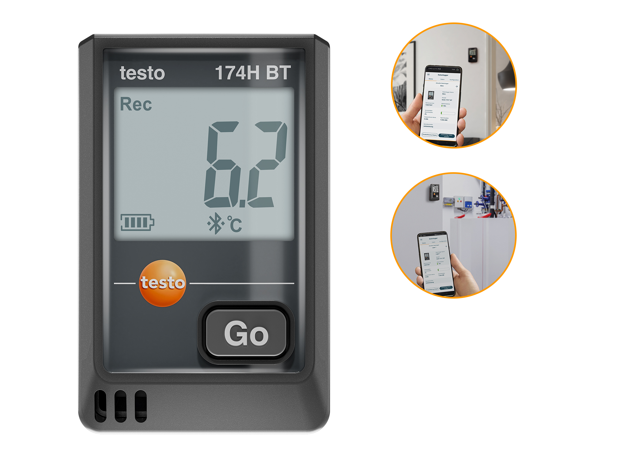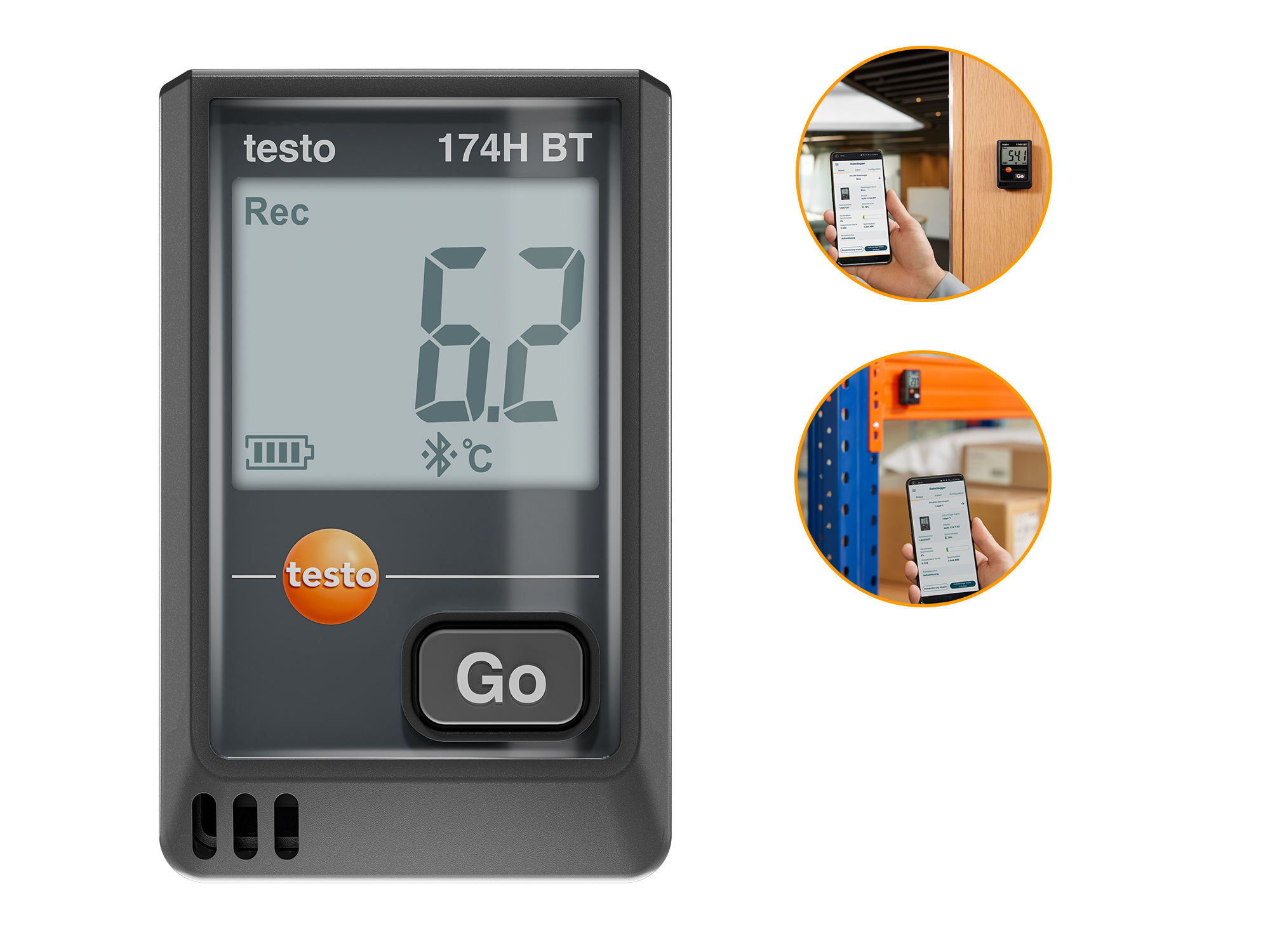 The testo 174 H BT mini data logger is suitable for monitoring the storage of temperature and humidity-sensitive goods such as foods or in archives, as well as for monitoring the climate in buildings. It precisely measures temperature and humidity in the range from -20 °C to +70 °C, displays current values and limit value violations and stores up to 16,000 readings. The data logger is easy to configure and evaluate using the free testo Smart App, which enables intuitive report generation and data evaluation via Bluetooth up to 30 meters distance.