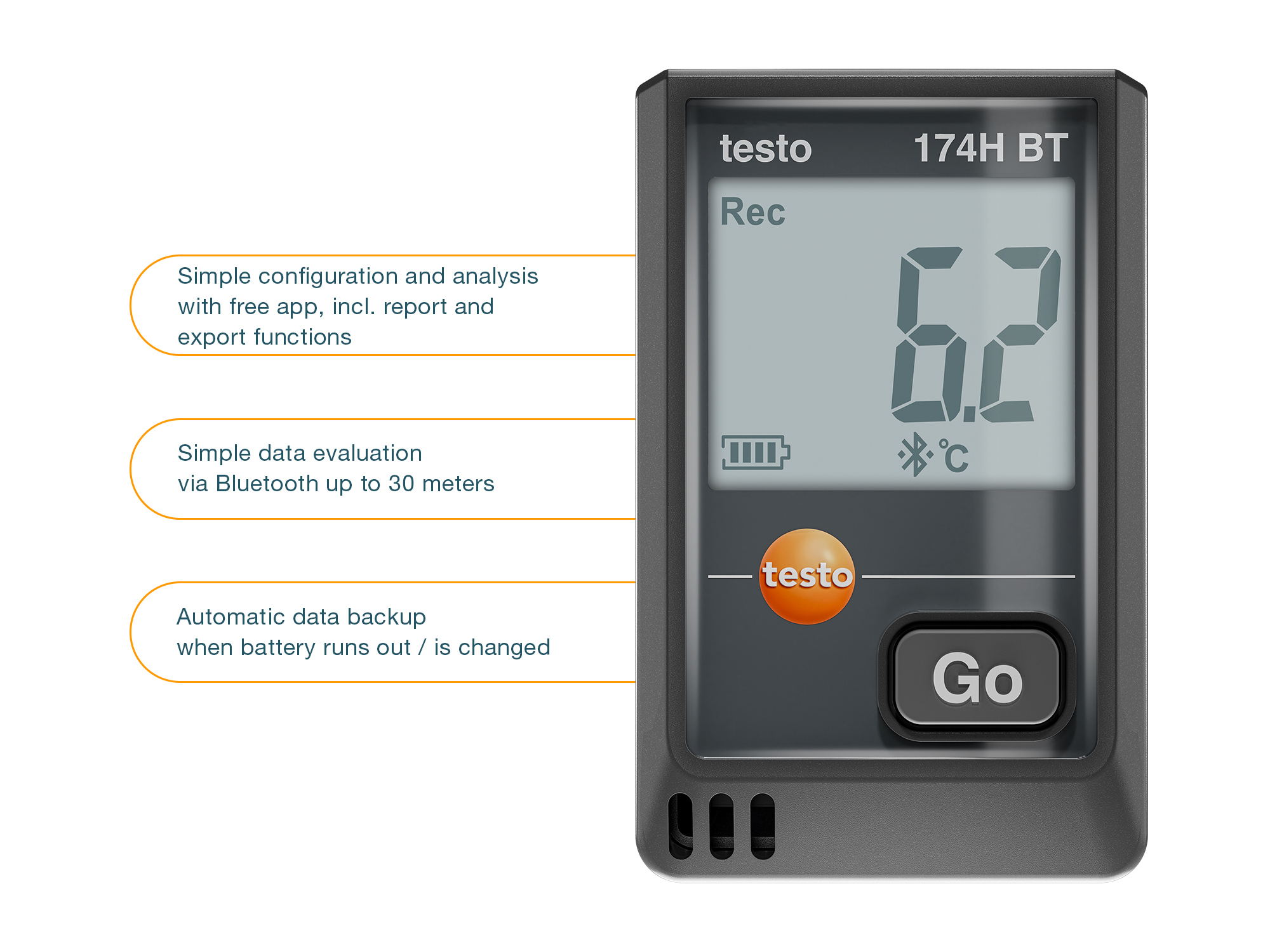 The automatic data backup ensures reliable measurement data acquisition, even when the battery is empty or has been replaced.